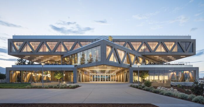 The Bjarke Ingels Group (BIG)-designed Claremont McKenna College Robert Day Sciences Center showcases the firm’s flair for producing eye-catching architecture and is made up of stacked concrete rectangular forms. Featuring a light-filled interior, the building also significantly reduces its draw on the grid with solar power.