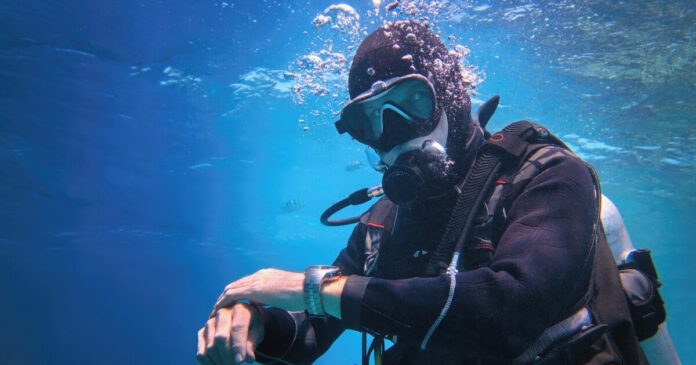 Watching a diver glide through the water under the sea’s surface makes the activity look quite calm and gentle, but the process actually engages the largest muscle groups in the body – the legs. All of that muscle activation requires oxygen for fuel, which is provided by a diver’s tank. A diver using an 80-cubic-ft tank at a depth of 65.6 ft can expect that oxygen to last, on average, about 35-50 minutes.