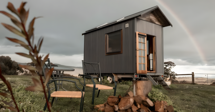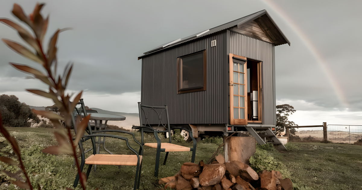 The Tallarook Hilltop Tiny House 1 is currently up for vacation rental on Airbnb in Victoria, Australia.